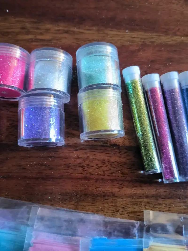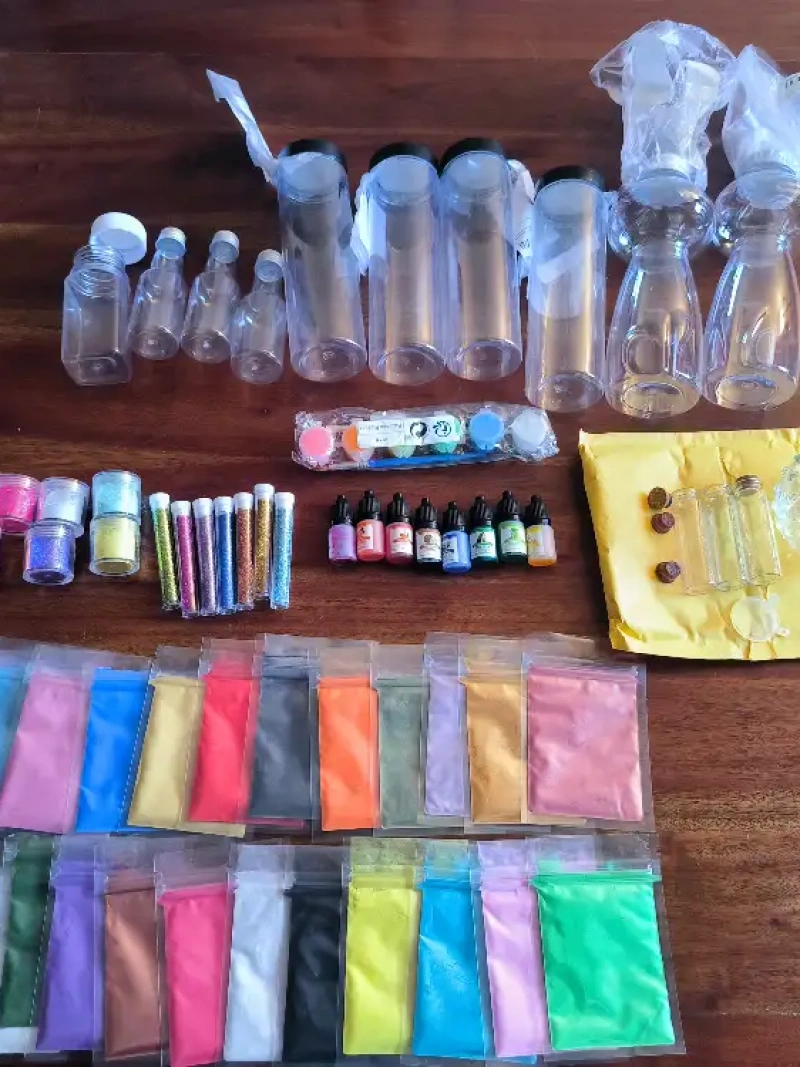 Grand lit poudre Mika, paillettes, colorants, récipients neufs