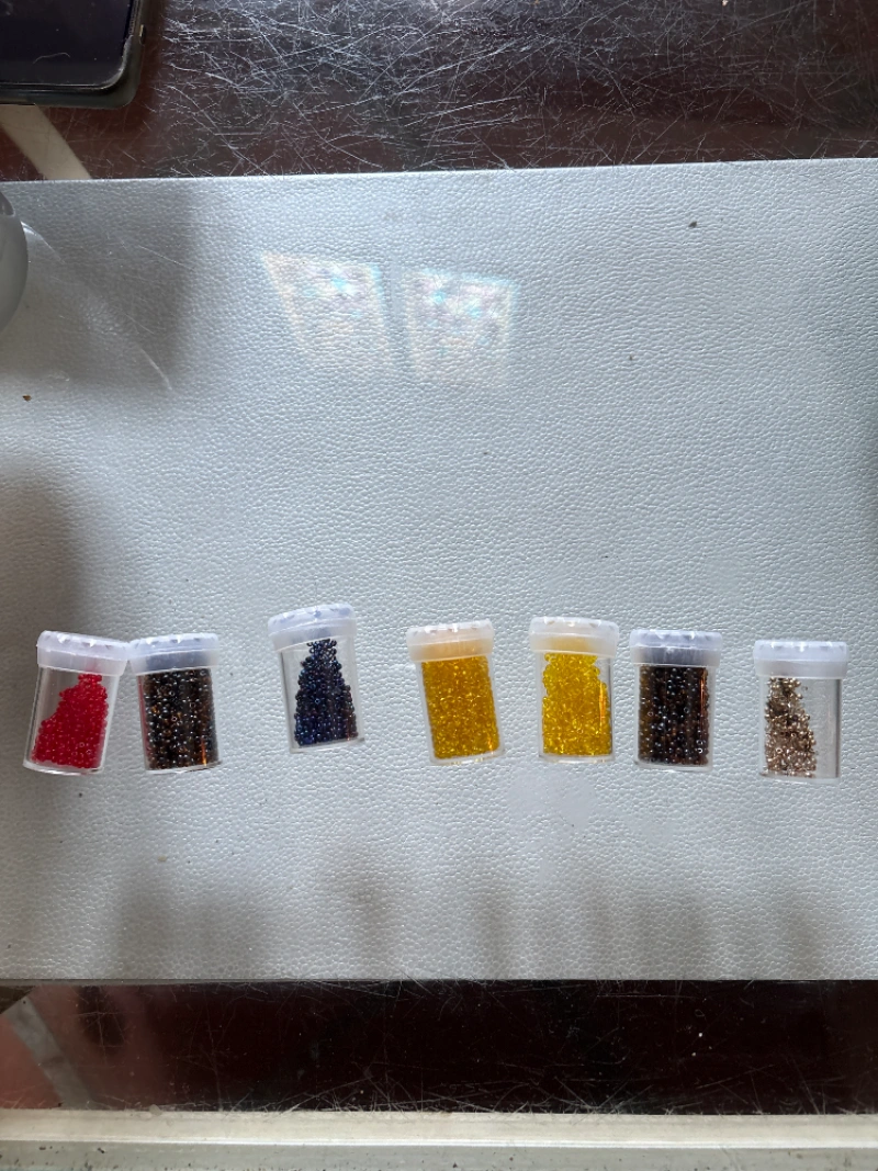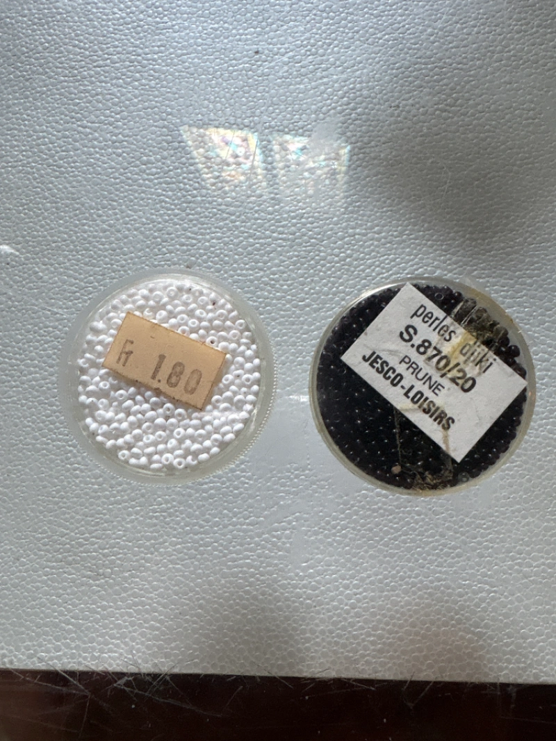 Et une série de 7 petites boîtes avec perles qui étaient des perles à broder
