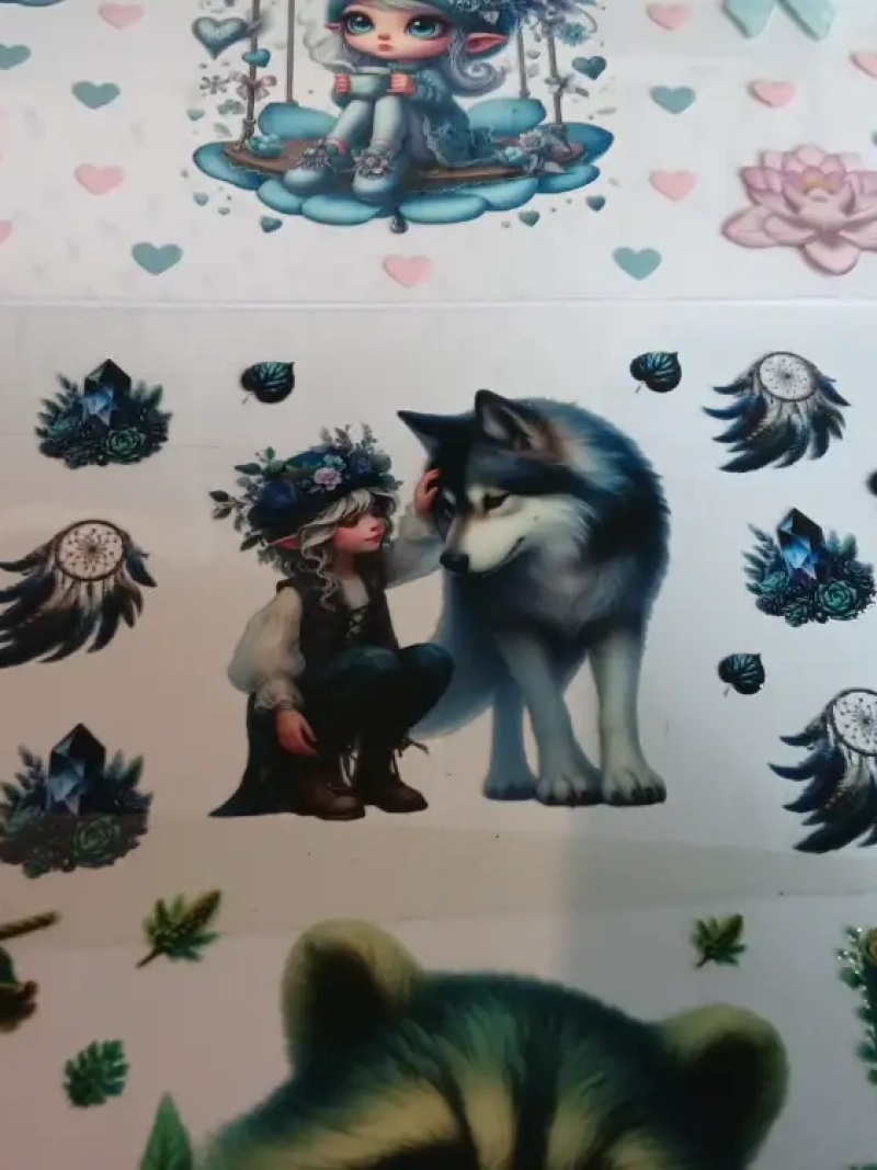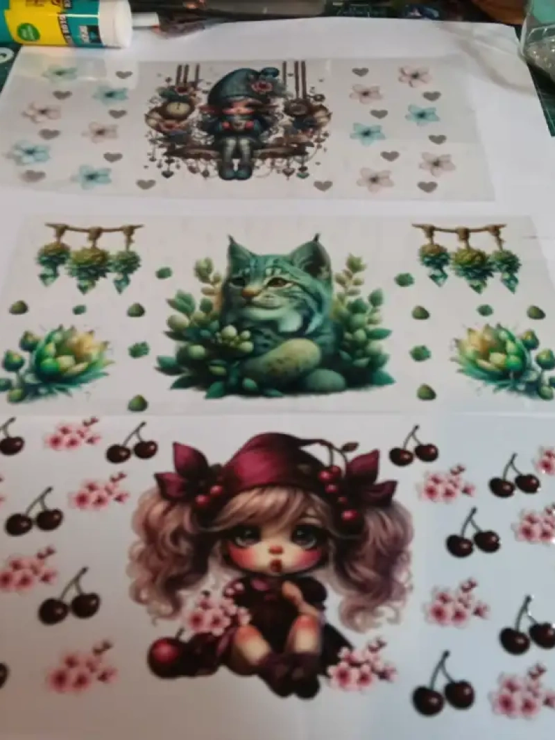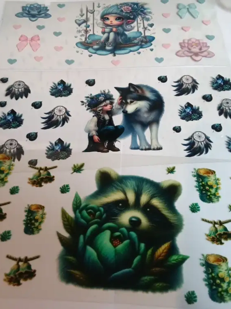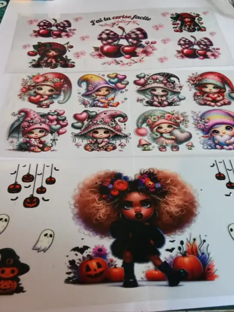 Lot de 9 stickers uvdtf imprimé recto verso idéal pour les gobelets 16 OZ ou peuvent être découpé pour s'adapter à vos créations. Une fois posés ils ne bouge plus éviter le lave vaisselle et le micro onde.