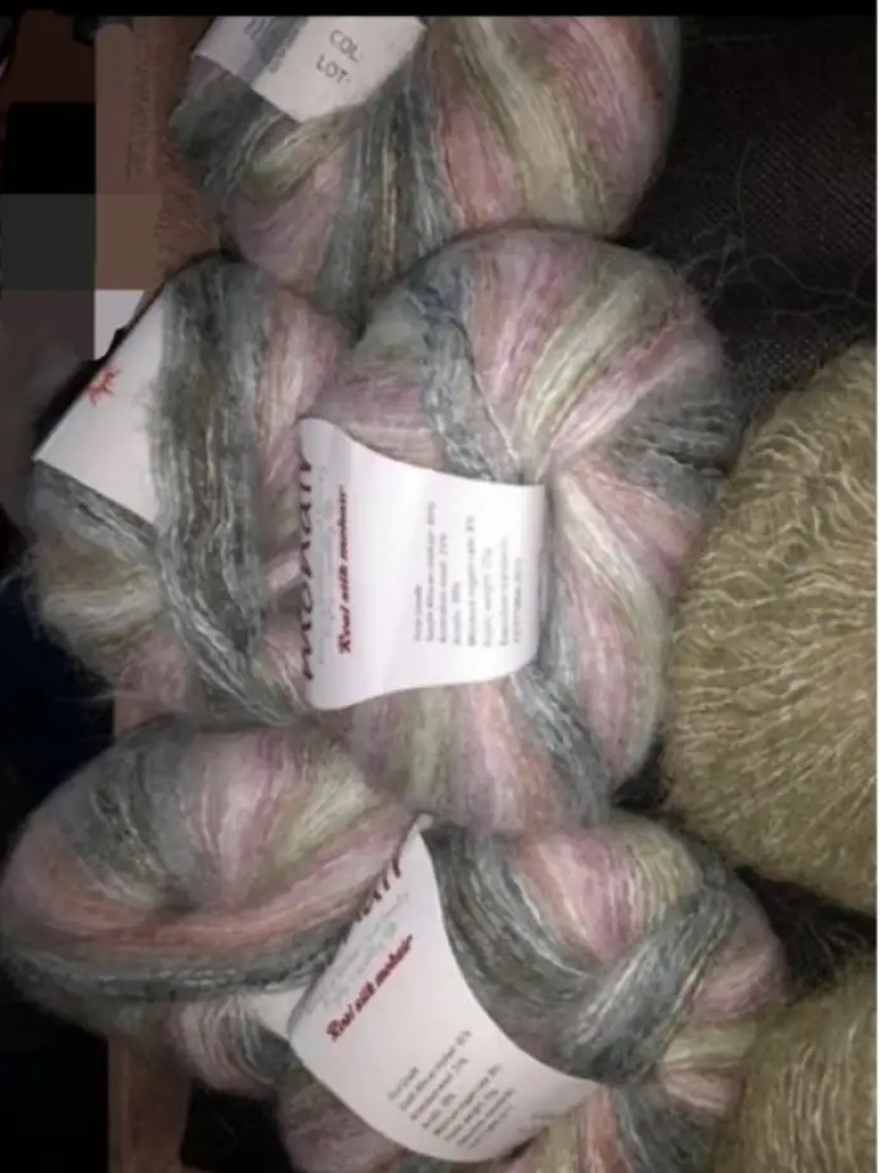 5 vert rose beige 25g 160m chaque, 45% mohair, 25% laine, 30% acrylic